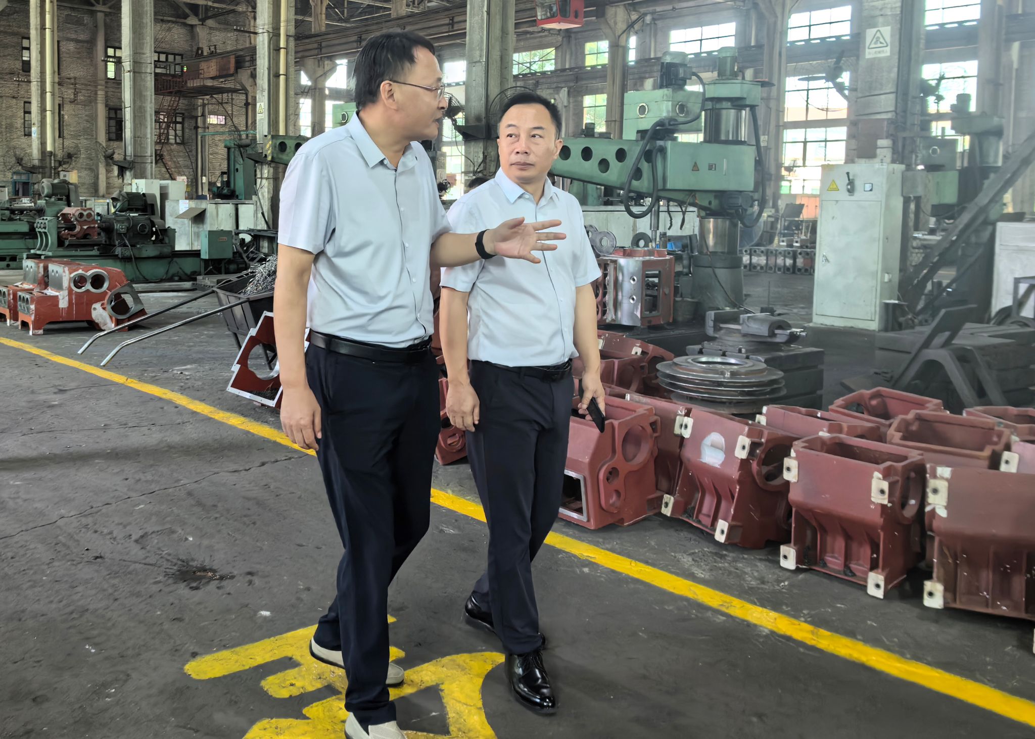作为“中国专业生产泥浆泵的摇篮”,该企业是国内地质装备制造骨干力量,主打泥浆泵、岩心钻机等五大系列百余种产品,新研发的电动顶驱钻机引领行业方向。吴跃萍一行深入生产车间,实地查看核心产品生产线,详细了解企业产品特性及各岗位对员工专业技能的具体要求。