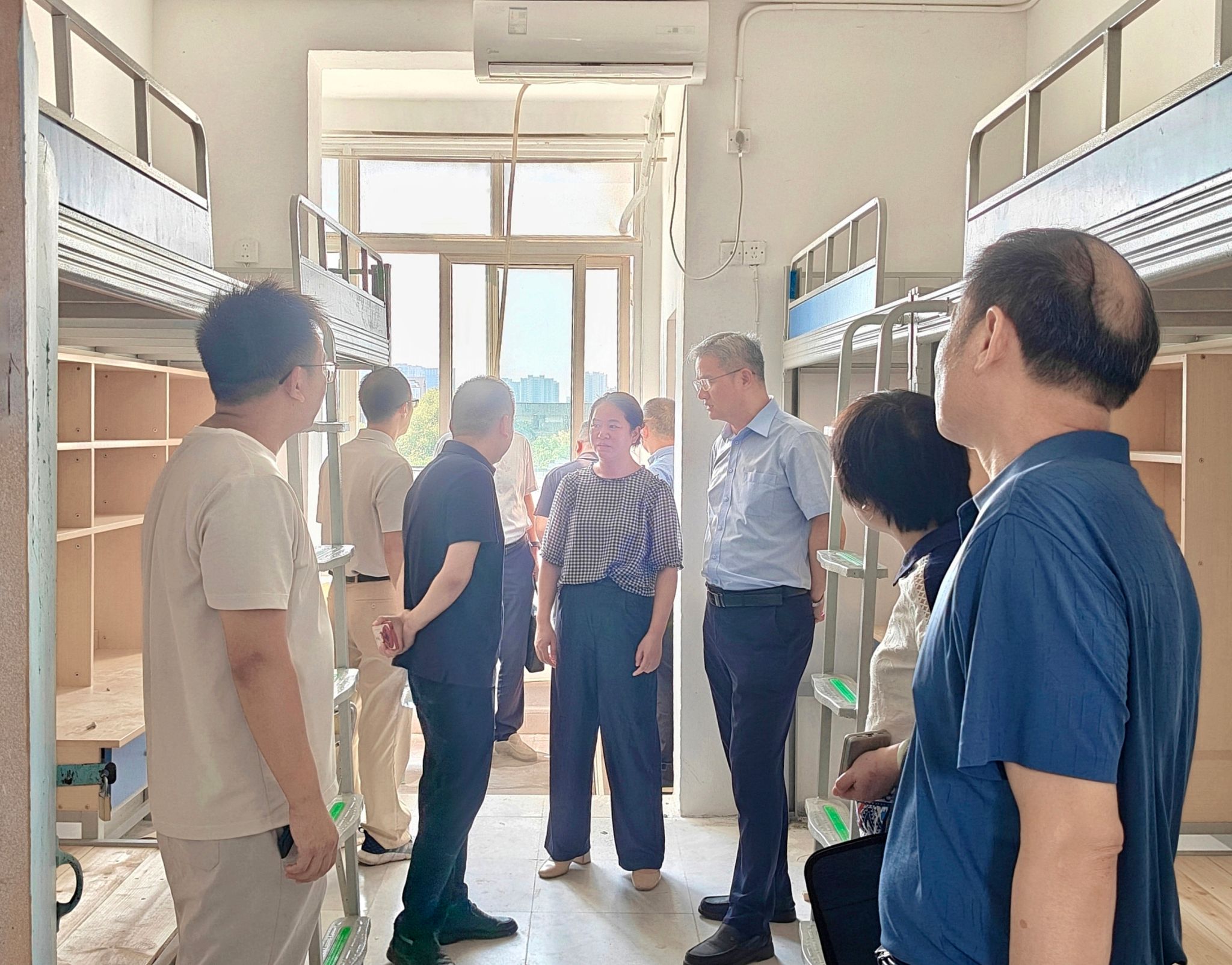 花严红、孙江云听取了各校区后勤保障、学生管理、教学管理等相关职能部门的工作汇报,并重点走访了宿舍改造现场、校园食堂、教学场所等关键区域。